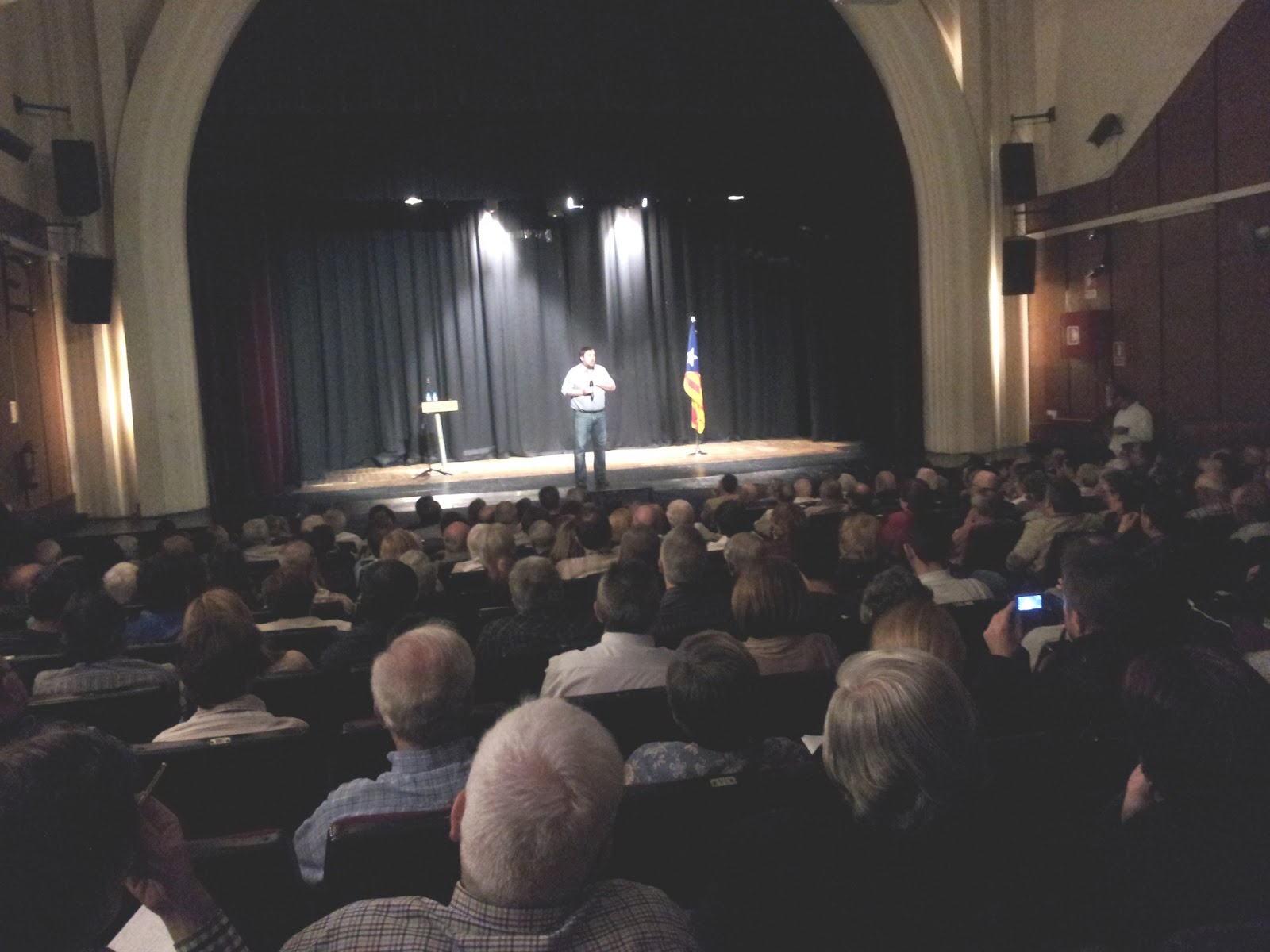 L'acte ha estat presentat per la presidenta dels Lluïsos d'Horta i per Jordi Coronas, conseller de districte d'ERC a Horta-Guinardó. I just abans de la intervenció de Junqueras ha parlat Lolo Calero, veí de Sant Vicenç dels Horts d'origen extremeny i que ha arrencat un parell d'ovacions del públic. "Catalanes somos todos, vengamos de donde vengamos" i "hay que dejar claro a PP y PSOE que en Cataluña hay muchos españoles que nos sentimos catalanes y que defendemos la independencia". Calero ha assegurat que "la independencia es el camino" i que "Junqueras es el Messi de la política catalana".
