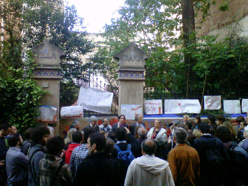El regidor d'ERC Jordi Portabella ha assistit aquest matí a la concentració que han convocat els veïns i associacions del barri del Farró de Sant Gervasi per aturar la demolició de la torre noucentista Vil.la Urània, a la Via Augusta. Es tracta de la casa que el científic astrònom Josep Comas i Solà (1868-1937) va llegar a la ciutat de Barcelona per a usos educatius i culturals i que l’Ajuntament de la ciutat tenia previst començar a enderrocar avui.